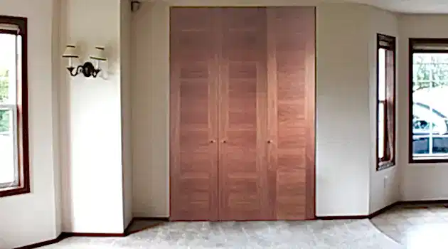 Las puertas e interiores de clósets se fabrican en bastidores, similar a una puerta de interior o tableradas construidas con tableros MDF, enchapadas o pintadas.